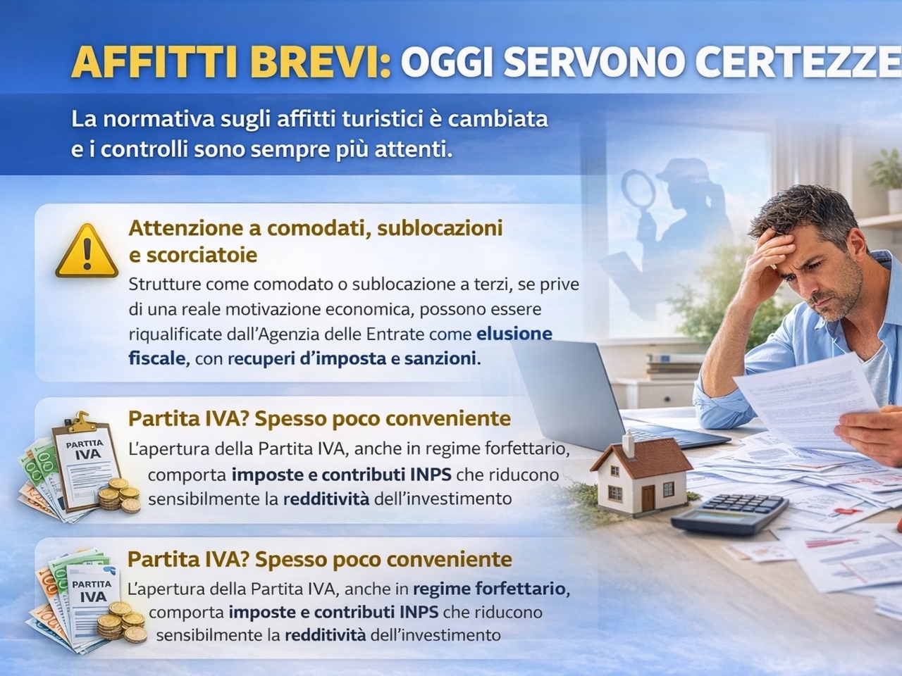 Affitti brevi: Il quadro normativo sugli affitti brevi è in continua evoluzione e negli ultimi mesi l’attenzione dell’Amministrazione finanziaria è aumentata in modo significativo.